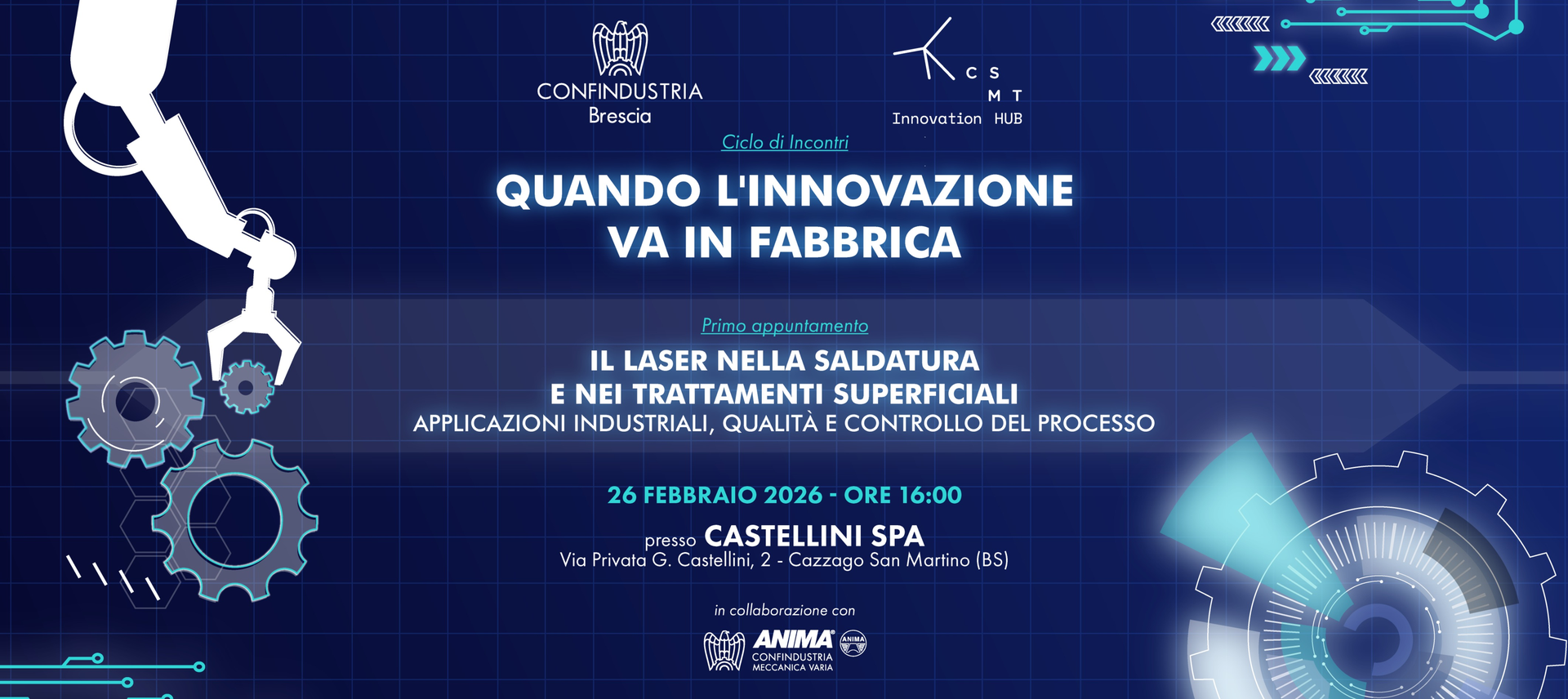 L’incontro inaugura il ciclo di appuntamenti “Quando l’Innovazione va in fabbrica”, promosso dalle nostre associate Confindustria Brescia in collaborazione con CSMT Innovation Hub e ANIMA, con l’obiettivo di portare i temi dell’innovazione tecnologica direttamente nei contesti produttivi.