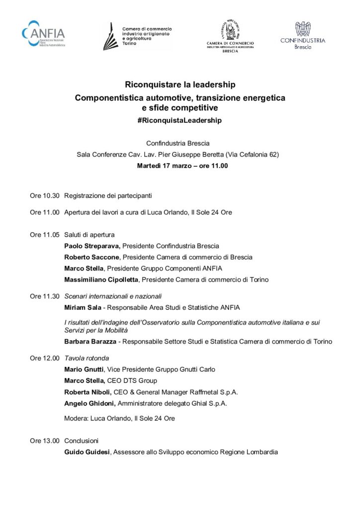 Evento in presenza, su invito. Il cluster sarà rappresentato dal Segretario Generale Prof. Ing. Giampiero Mastinu.