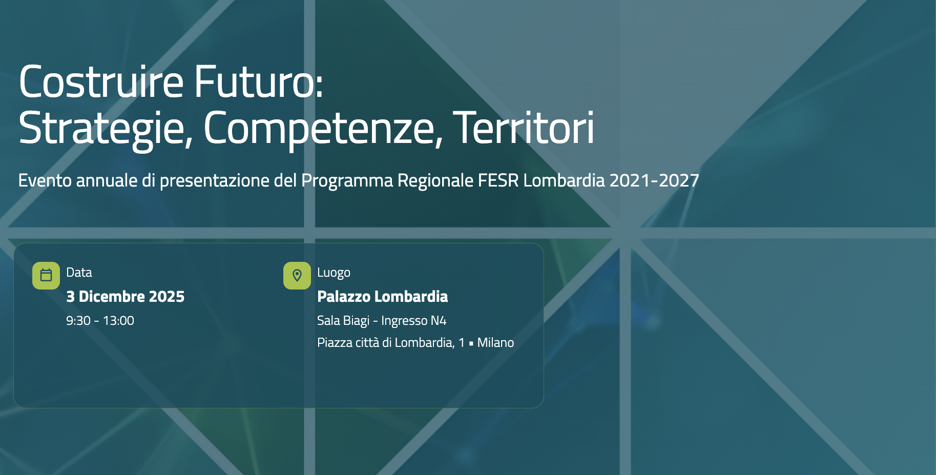 Costruire Futuro: Strategie, Competenze, Territori Evento annuale di presentazione del Programma Regionale FESR Lombardia 2021-2027